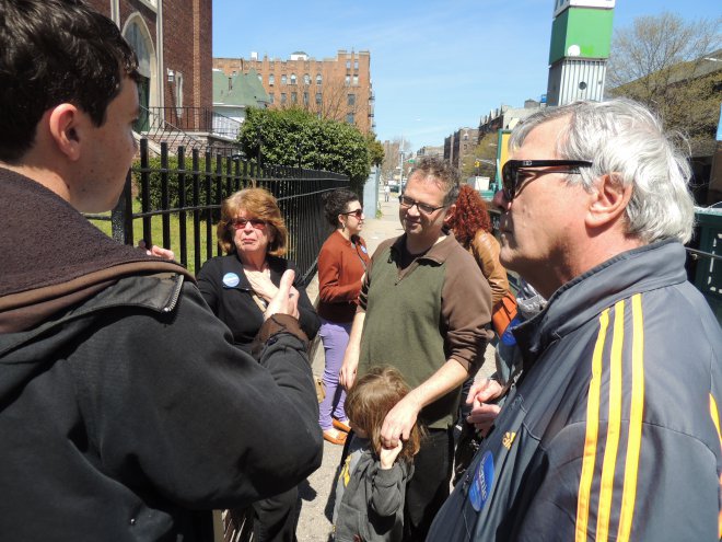 Punktsieg für Bernie. Fünf klare Bekenntnisse für ihn, nur eines für Hillary bei den registrierten Wähler*innen im Süden Brooklyns. Ein überzeugendes Ergebnis - nur ist es leider nicht repräsentativ. Canvassing oder door-knocking, so werden die Haustür-Besuche genannt, ist selbst oder besonders bei den ersten frühlingshaften Temperaturen ein mühseliges Unterfangen. In der Regel werden die potentiellen Wähler*innen nicht angetroffen. Samstagnachmittag ist vielleicht auch nicht die perfekte Zeit dafür. Aber diejenigen, die angetroffen werden, reagieren ausgesprochen freundlich.