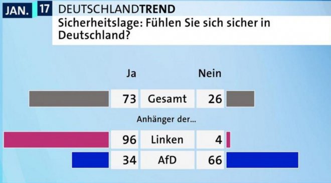 Trotzdem gibt es ganz klar empirisch messbare Gemeinsamkeiten – etwa, wenn in einer Allensbach-Studie LINKE und AfD-AnhängerInnen zu einem relevanten Teil angeben, die jeweils andere Partei sei die „zweitfavorisierte“. Auch bei anderen Positionen etwa in der Außenpolitik lassen sich Gemeinsamkeiten bei den WählerInnen von AfD und DIE LINKE feststellen. In Ostdeutschland lag zudem die Selbsteinschätzung der eigenen wirtschaftlichen Lage bei AfD- und LINKE-WählerInnen nah beieinander.