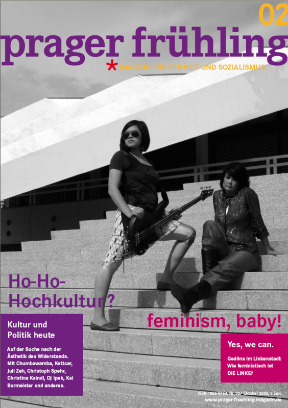 Mitte Oktober 2008 kam die zweite Ausgabe von prager frühling, dem neuem Magazin für Freiheit und Sozialismus. Das nächste Heft widmet sich schwerpunktmäßig dem Verhältnis von Politik und Kultur. Ziel der Redaktion ist es, politisches Engagement und Kultur einander näher zu bringen. Dabei geht es nicht um eine Kolonisierung des einen Bereichs durch den anderen ...