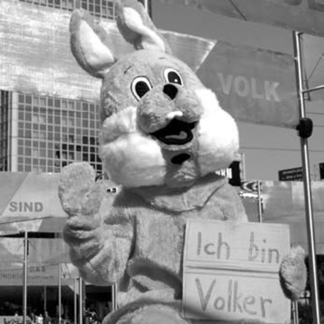 Ist der plüschigste Antinationalist, den die Welt je zu Gesicht bekam. Er stört, wo er kann und manchmal kann man ihm auf seiner Website www.pink-rabbit.org dabei zuschauen, wie er verdutzte Bundeswehrsoldaten attackiert oder PolitikerInnen unerwartete Besuche abstattet.