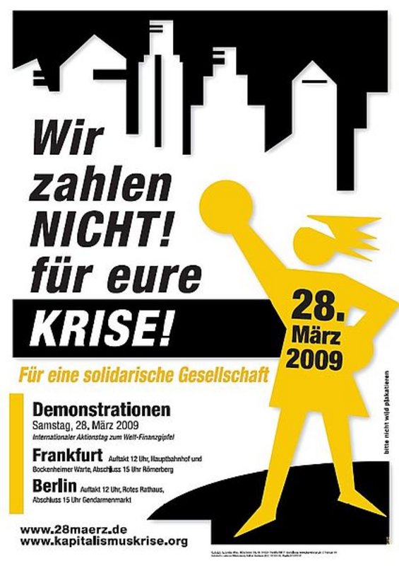 Immer noch lautet das dominante Deutungsmuster, die Krise habe ihre Ursache in der Gier und der Maßlosigkeit einiger weniger. Diesem Deutungsmuster müssen wir unsere eigene, alternative Erzählung entgegensetzen und sagen, was ist. Bei dieser Krise, von der wir momentan nur die Spitze des Eisberges erleben, handelt es sich nicht einfach um eine Finanzkrise, sondern um eine Krise des real existierenden Kapitalismus. Der finanzmarktgetriebene Kapitalismus ist nun einmal auf eine ständige Expansion angewiesen. Da es für diese beständige Expansion aber schon längst keine produktive Grundlage mehr gibt, (Ganz zu schweigen davon, dass der kapitalistische Komparativ des „Schneller-höher-weiter-mehr-Profit“ die Grenzen des ökologisch Vertretbaren längst überschritten hat.) muss er in einer virtuellen Geldluftblase enden. Dass diese irgendwann platzen würde, war abzusehen.